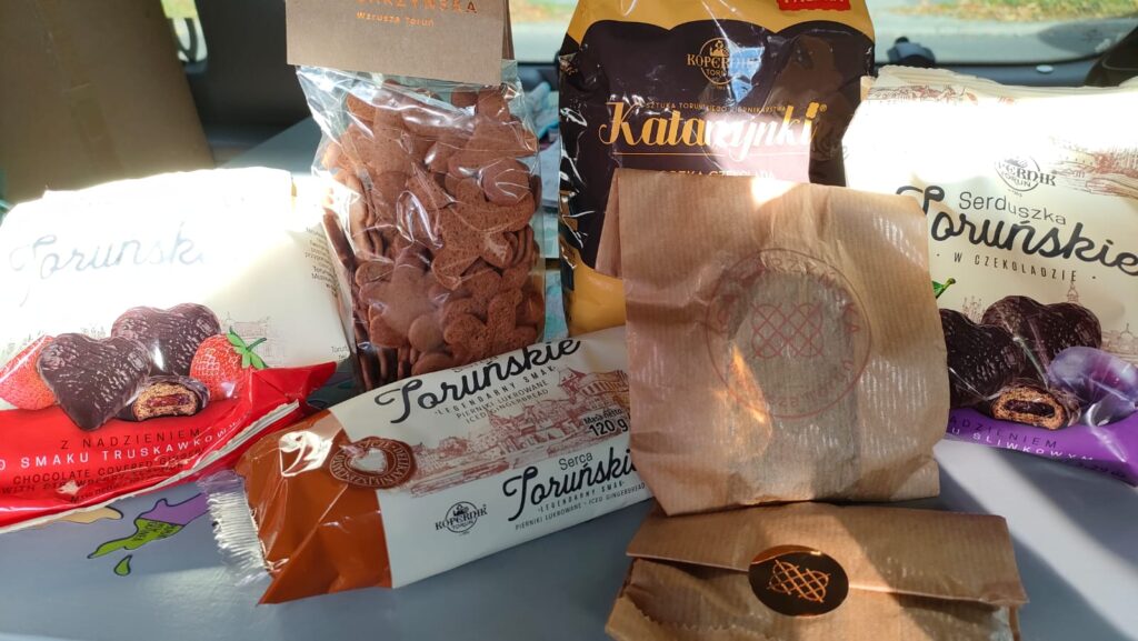 De volgende dag om 12.00 uur namen we afscheid en vertrokken om alleen de stad in te gaan. Vanwege de beperkte tijd die we hadden, liepen we door Torun om wat foto’s te maken en kochten we wat ‘Pierniki’. Dit is een traditionele peperkoek die al sinds de middeleeuwen in Torun wordt geproduceerd. Ze zijn er in verschillende maten en verschillende vijlen. Als je wilt, kun je het museum bezoeken en leren hoe je ze maakt.
