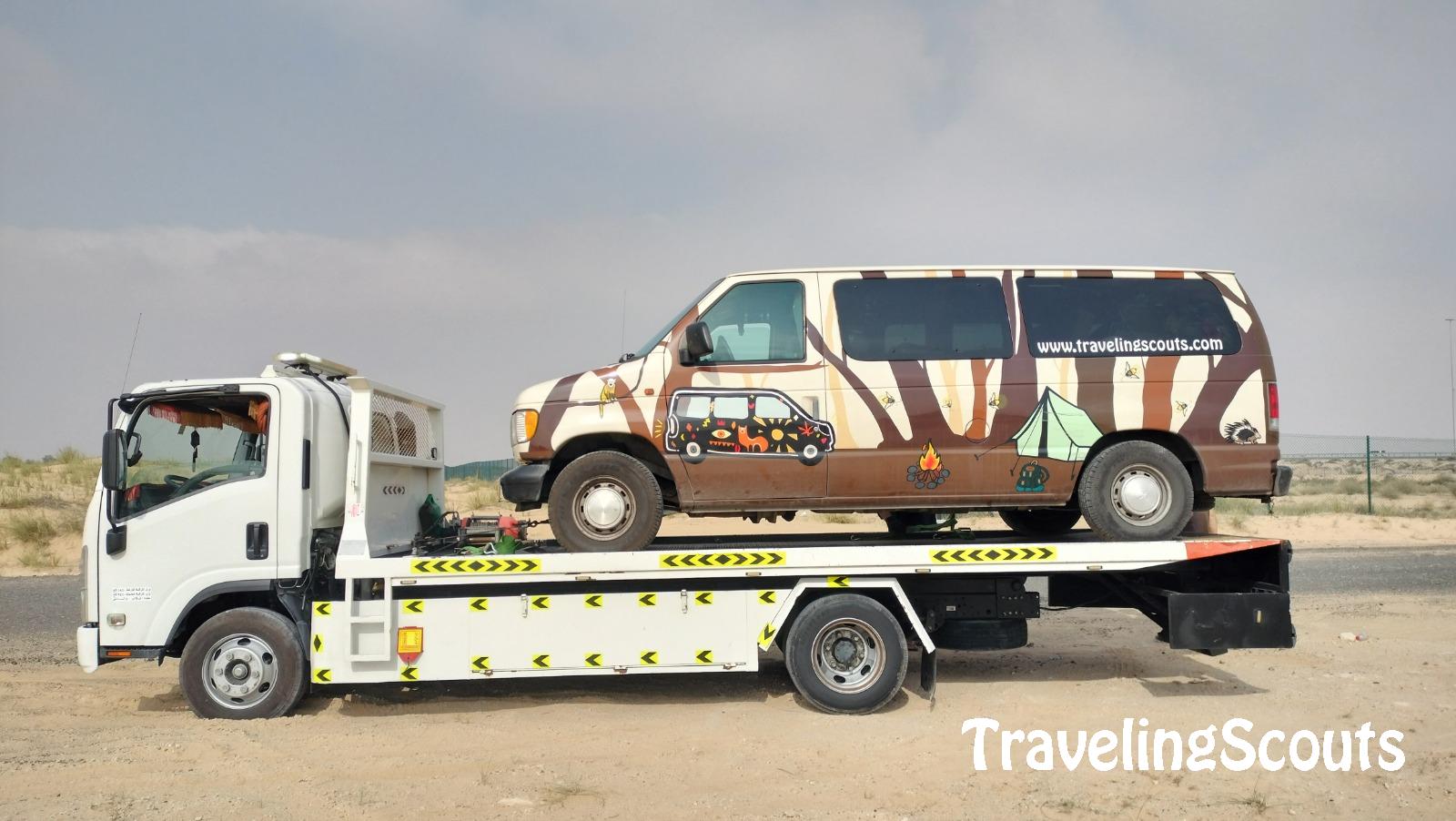 De volgende dag hebben we een autotransport laten komen welke ons naar de garage hebben gebracht. Daar hebben ze geconstateerd dat de benzinepomp defect was en hebben ze er een nieuwe in gezet.