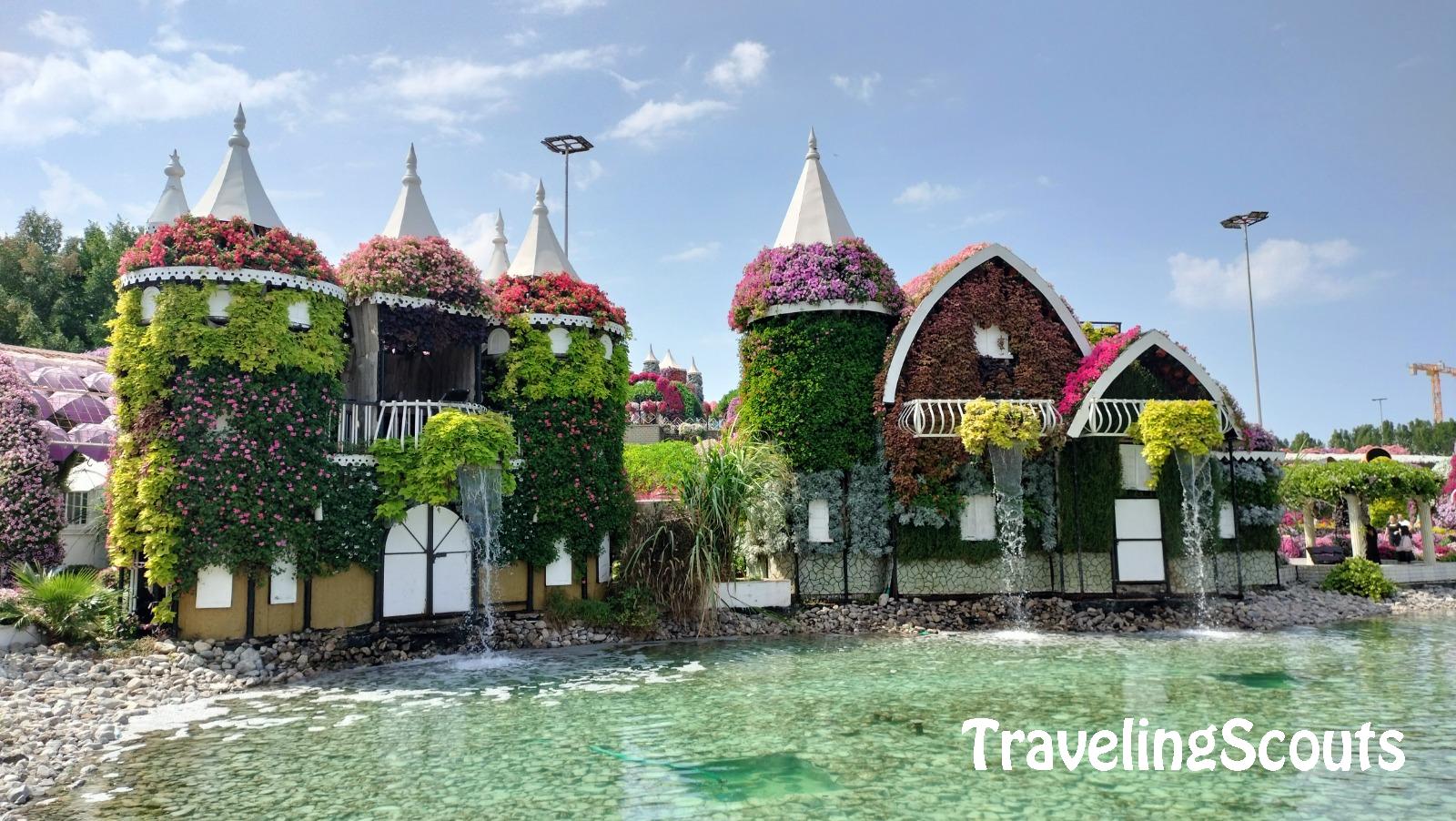 In Dubai gaan we een dag Dubai Miracle garden, een grote kleurige bloementuin met grote objecten en water.
