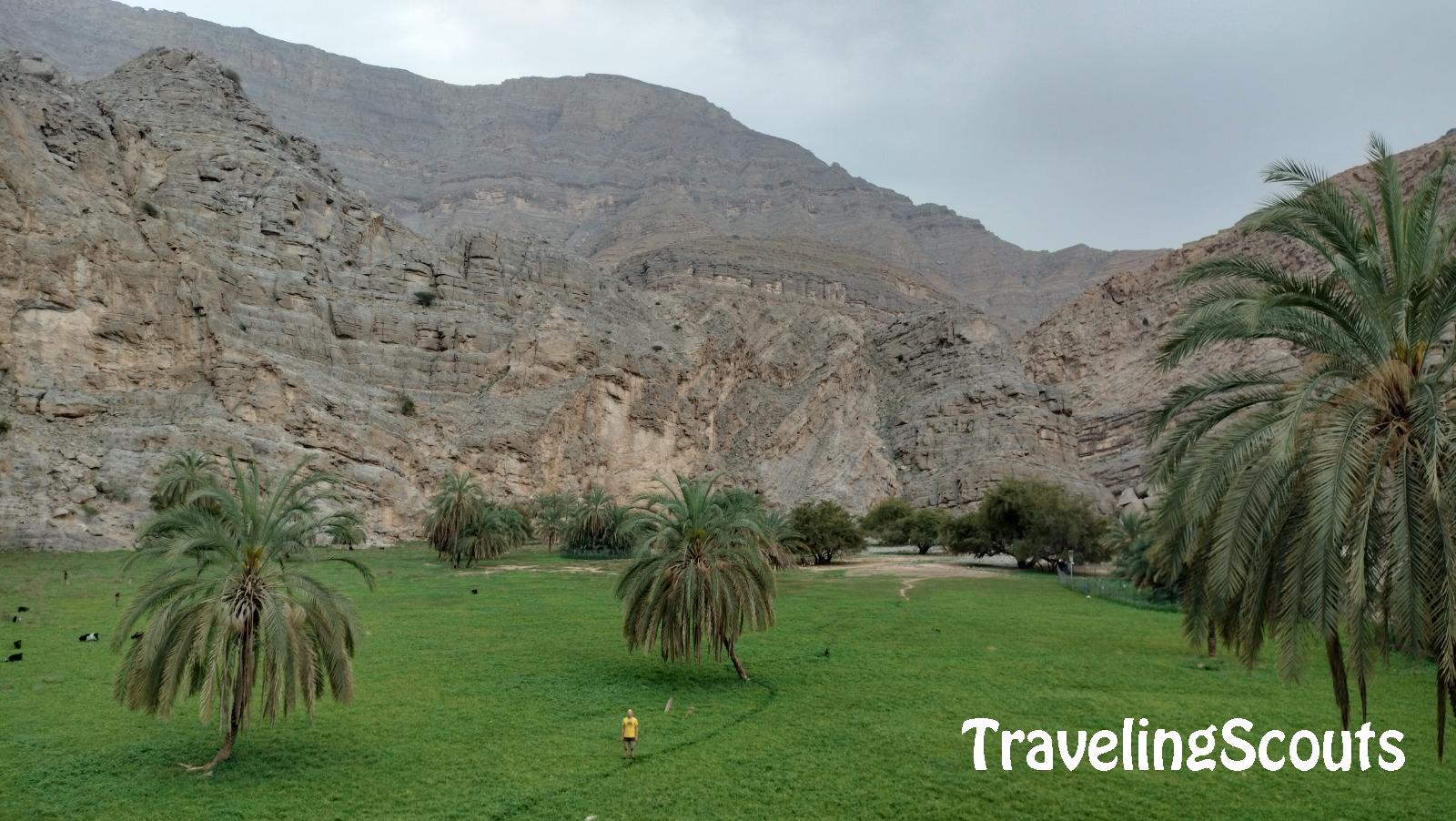 Vanaf de parking is de oasis ongeveer 1 uur lopen over een niet te moeilijk pad door de bergen. En inderdaad kom je dan bij een mooie groene vlakte uit.